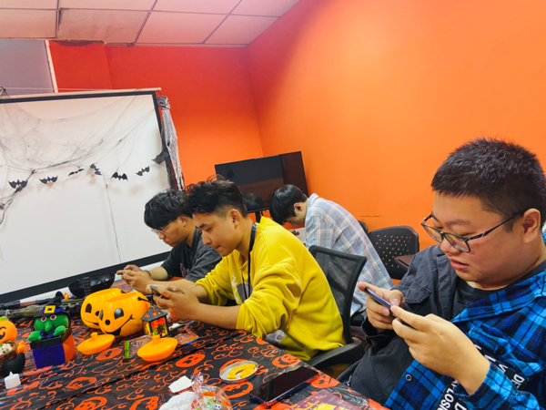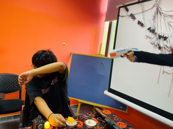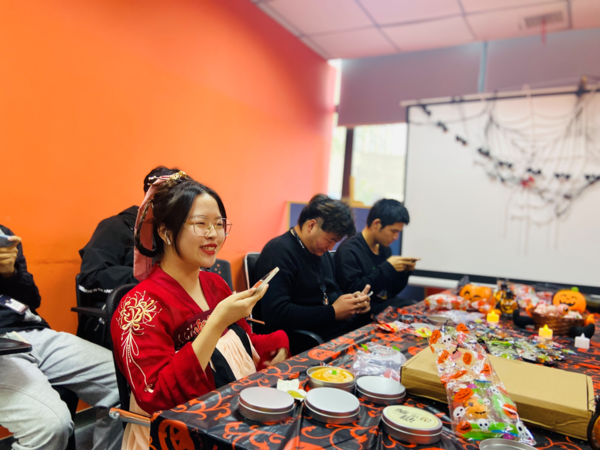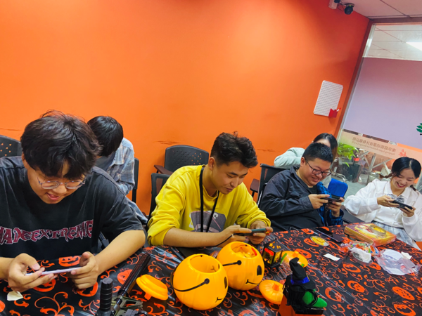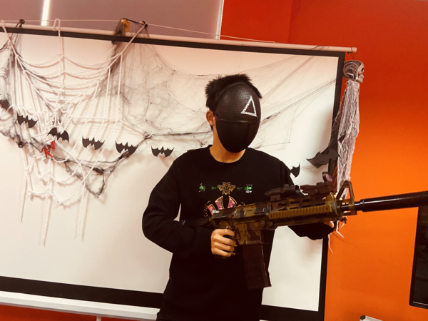万圣节玩当下最火的“鱿鱼游戏”,恐怖感加倍!南瓜灯、骷髅架、连体衣、木头人……氛围感已经拉满,NPC已就位,大伙儿玩起了各种小游戏,既有失败的小惩罚,也有获胜的战利品。